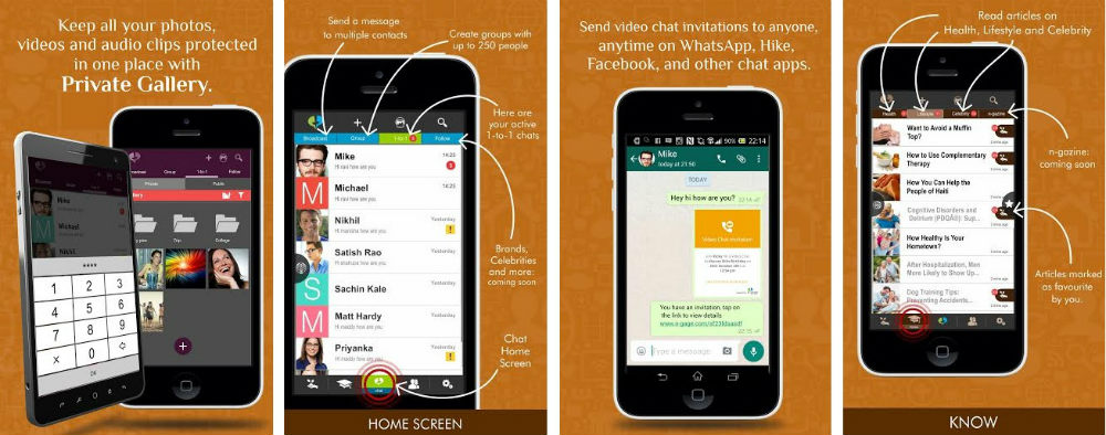 So this isn’t like your traditional chat apps, but it is also a chat app loaded with abundant features, which are futuristic and useful as well. The best feature that I would highlight is cross-platform app where you can make calls/send messages to users across different platforms (Hike, WhatsAppetc). And it does not end here, there is more to it. N-gage allows you to make video callsacross apps with multiple people at the same time. And if that is not enough, you can also send and receive password protected messages and pictures.
