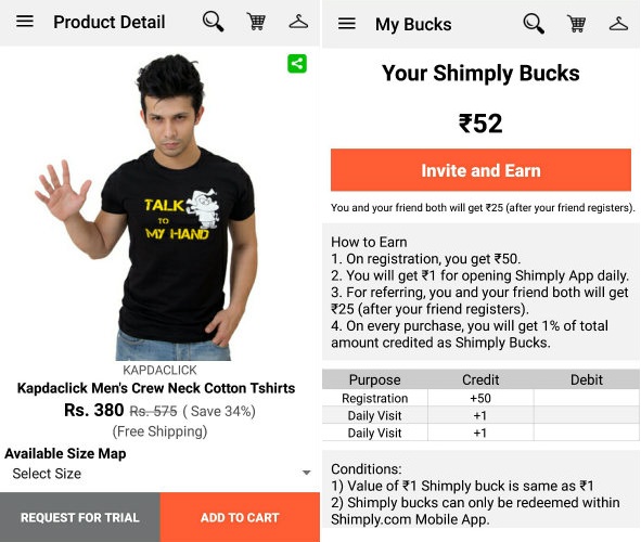 There is also an option inside “Product Detail”, it is Request For Trial. It just means that Shimply app will be making them available for virtual trial/adding them to trial room. If somebody has requested a particular product for trial, that person will get a notification regarding the same once the product is available for virtual trial. Apart from it users can earn money after downloading this app and also earn money on daily basis.