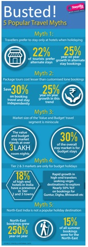 New Delhi, India, October 02, 2014: Stayzilla.com, India’s largest online marketplace for ‘stays’ that covers over 17000 stay options in India, recently went on a mission to decode some popular travel related myths and found that some of the results of their exercise were completely contrary to popular wisdom. Ranging from perception of the size of different travel segments, tips on how to save more while traveling, and insights in new, emerging travel hotspots, the study covers the entire gamut of the travel ecosystem.
