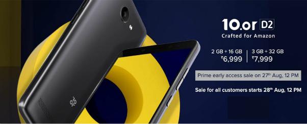 10.or D2 will be available for sale starting 12 noon on August 28, 2018. Prime members will get early access starting 12 noon on August 27, 2018. Starting 12 noon today, customers can register themselves to get notified about the sale and check out special offers.