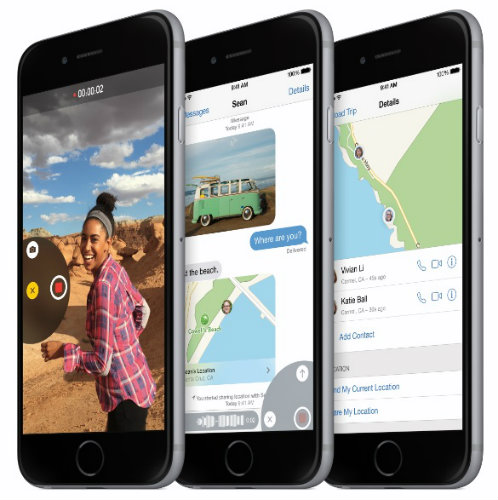 Messages in iOS 8 makes conversations more immersive. Simply Tap to Talk to share your voice. The same gesture also works for sharing photos and videos. Users can now share several photos and videos at once and easily browse through all of them within a conversation from one place. Group messaging gives you the ability to add and remove contacts, and the option not to be disturbed or to leave a conversation entirely. You can also choose to share your current location from within Messages for an hour, a day or longer.