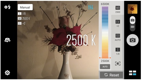 By default, all settings including White Balance, Exposure Value, ISO, and Macro are set toAuto. However, there is no boudary for creativity. Users may take photos with different brightness level, quality, colors, etc. The above sample is taken in Manual mode set to Auto. And below is a photo shot in Manual mode with White Balance set to 2500K, Exposure Value set to +2, andShutter Speed adjusted to 1/8.