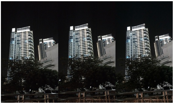 The photo on the left was taken in Auto mode. In the middle is a sample photo in Super Resolution mode. Lastly, on the right is a photo in Low Light mode.