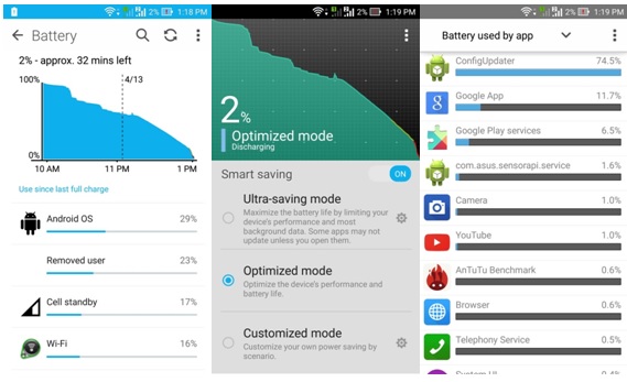 In comparison to the previous series, ASUS ZenFone 2 offers a faster battery charging as it features a power adapter with a higher output of 5V/2A.Initially, ASUS used a 1,35 amps power adapter for ZenFone series.