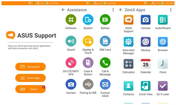 The newest ZenUI features ASUS Support, offering three menus: Assistance, ZenUI Apps, and News. This feature is dedicated to help ZenFone users troubleshoot their phones.