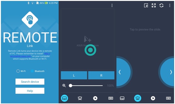 Another good feature is Remote Link. It is a powerful utility that lets users use ZenFone 2 to operate PowerPoint or Windows Media Player in the laptop/notebook via Bluetooh connection.