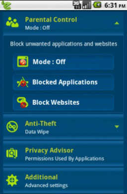 The eScan Mobile Security has easy to use user interface, which gives us a quick access to all the features.