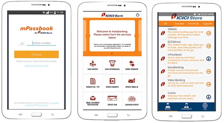 - ICICI Store: It’s an app store designed to give users an aggregate view of all mobile banking applications, launched by the ICICI Group. This store, which is the first among banks in India, will facilitate easy selection, download and upgrade of the ICICI Group apps.
