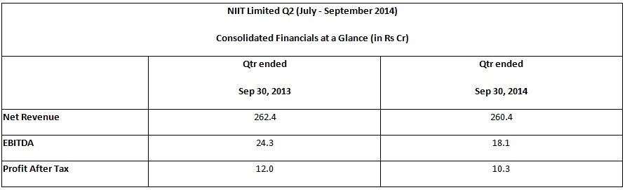 NIIT Limited announces Q2 (July – Sept 2014) Consolidated Results FY 2014-15