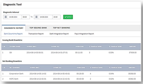 In addition to getting maximum conversion, PayU has built a diagnostic tool to help merchants analyse and compare conversion rates between two time periods. At the end of diagnosis, an automatic report is generated which provides the cause of success rate fluctuations such as integration issues, bank downtimes and change in payment mix. (Refer image below)
