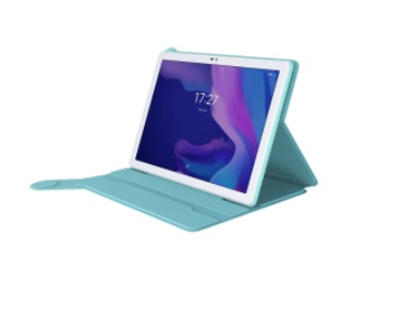 Alcatel TKEE MAX can be complimented with a novel mint green bumper case with soft, rounded corners which is durable and child-friendly. Its robust and foldable back stand makes it perfect for watching educational videos and playing learning games.
