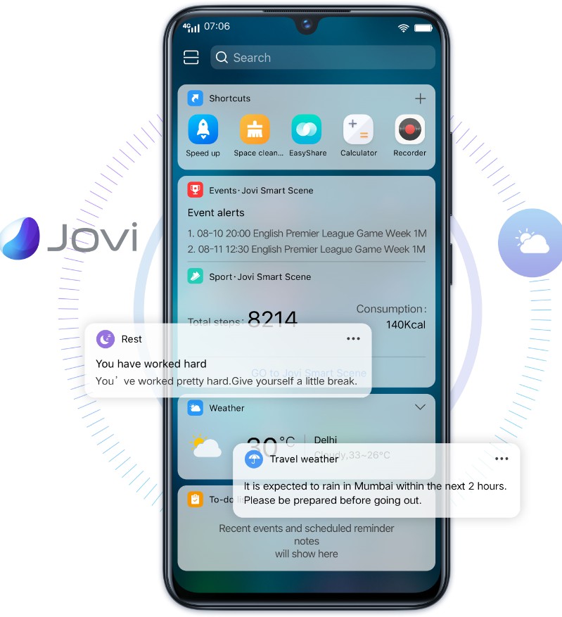 The device comes with Jovi – Vivo’s AI assistant, which is designed to understand the user’s requirements and make their life easier, simpler, and smarter. Be it the weather forecast, your schedule or the results from your favorite sports teams, it can quickly give you the information you need in real time. Jovi also cares about your health and happiness, and reports your sports and exercise data at the end of each day.