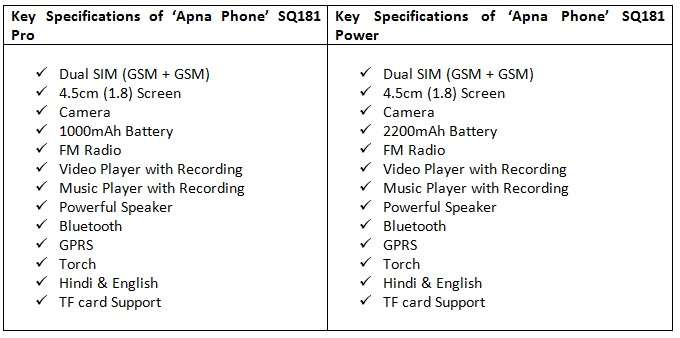 Director of Champion Computers Kapil Wadhwa said, “We are committed to offer the rich media experience and simple functionalities combined with quality to our customers at an affordable price. Both the series of ‘Apna Phone’ SQ181 are available through retailers with plans in southern and western parts of India.”