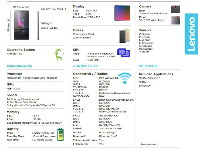 Perfectly sized at 16.2 cm (6.4), the full-sized Phab 2 smartphone comes in a classy full metal body design that offers a premium look and feel. It is available in two colour variants – Champagne Gold and Gunmetal Grey.