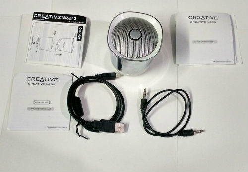 Inside the box, user get Bluetooth speaker Creative Woof 3, Micro USB Cable, Starter Guide.