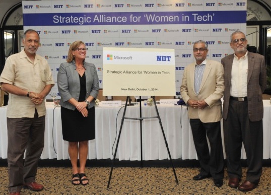 New Delhi, India, October 01, 2014: NIIT Limited, leading Global Talent Development Corporation will partner with Microsoft India on its significant ‘Women in Tech’ initiative that has been designed to provide, attract and retain women talent in the IT industry. As the Primary Learning Partner, NIIT will utilize its nationwide network to train& certify girl students &women in the latest Microsoft technologies, through Technology Skill enhancer courses. This will enable young girls and women in the country to find suitable careers in IT and accelerate their growth in the fast-evolving IT industry. The initiative will target girl school students, young women students in STEM (Science, Technology, Engineering and Maths) colleges, women IT professionals and women entrepreneurs.