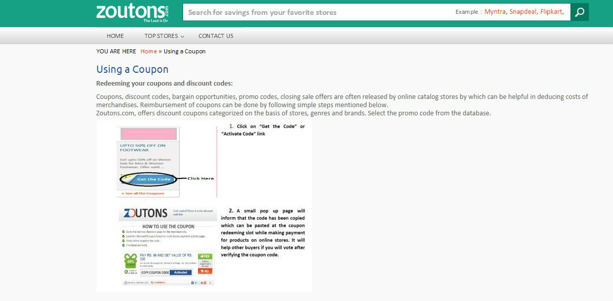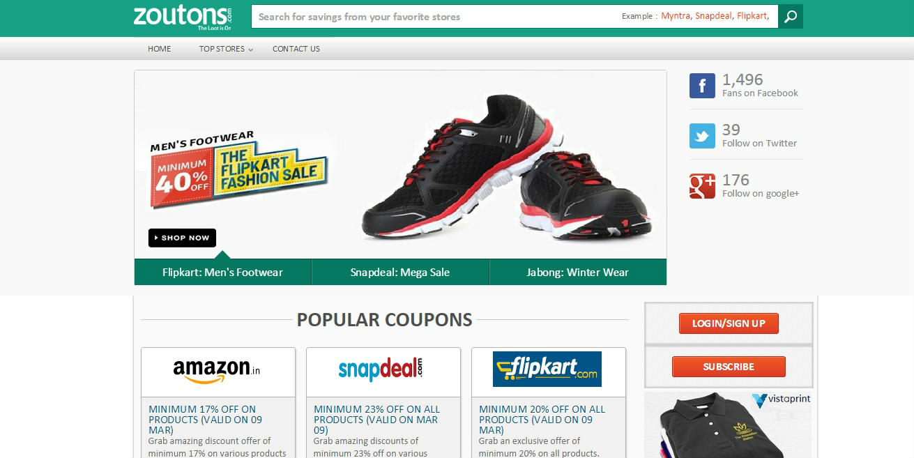 Zoutons.com is not just a couponing website, it’s a deal discovery portal. Zoutons.com has tied up with top e-Commerce stores like Jabong, Flipkart, Snapdeal etc. to provide their coupons to deal hunters. The website helps in finding great saving deals on various products ranging from home appliances to computer accessories, designer wear for men, women and kids, discount on holiday packages.