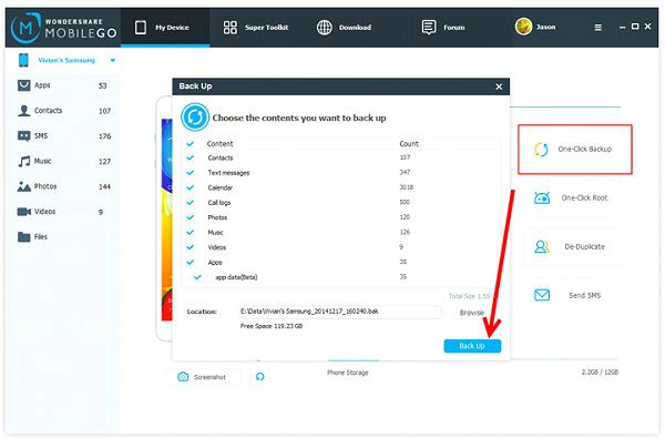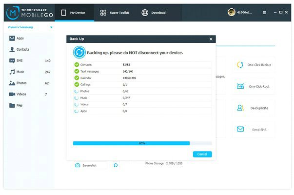 Supported files to back up – music, video, photo, SMS, contacts, app, call logs, documents, files, etc.