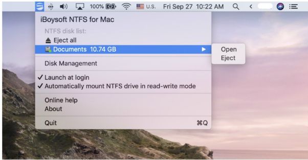 The last step is to launch iBoysoft NTFS for Mac. Once you open this software, your NTFS formatted drive will be automatically mounted in read-write mode. That’s to say, you have full access to this NTFS drive and you are able to write to, edit, delete, copy, and paste files as it is natively supported.